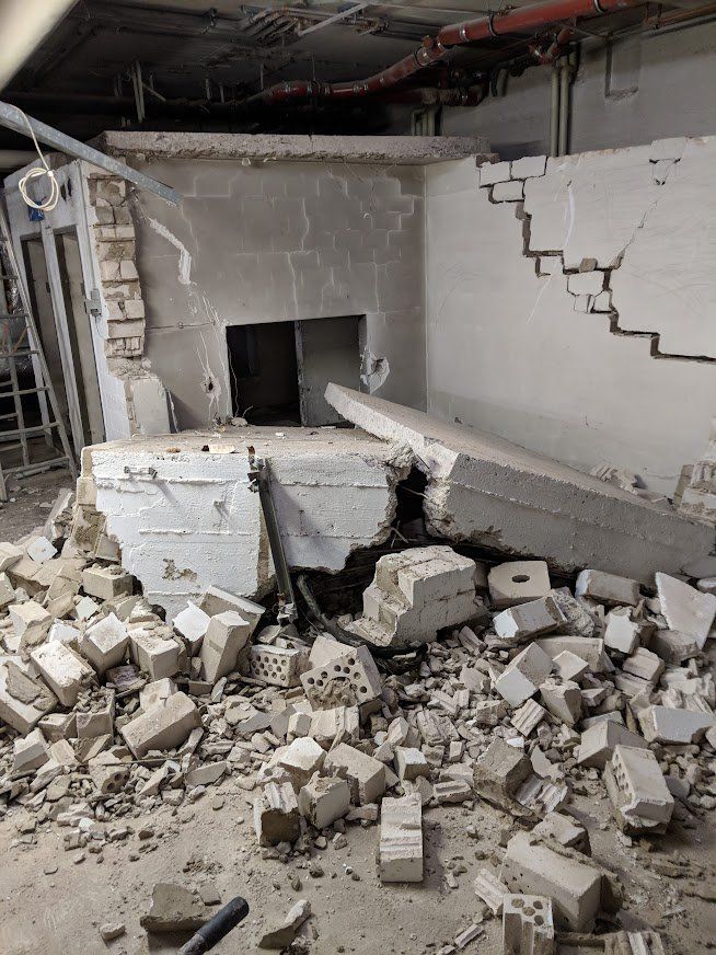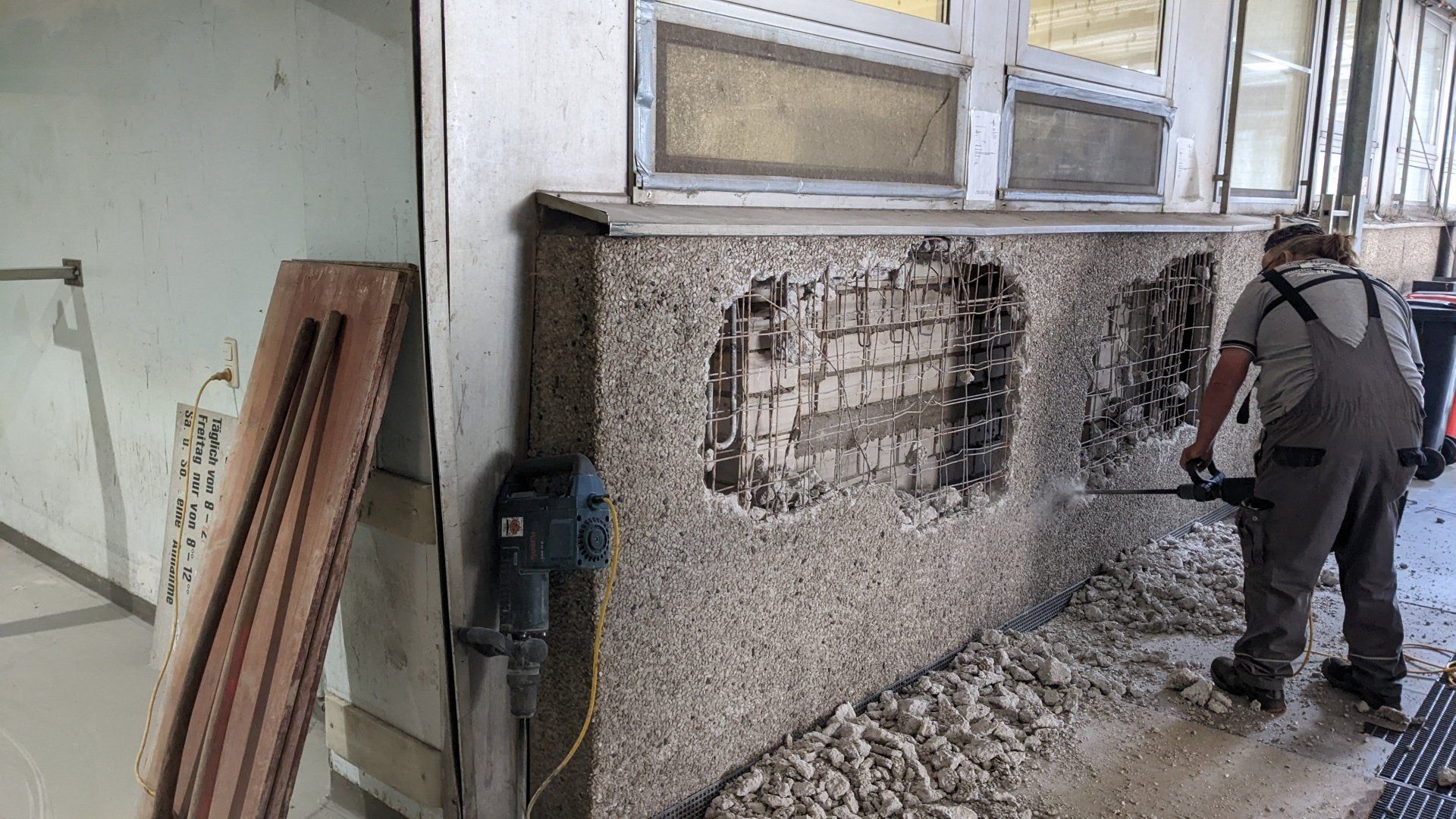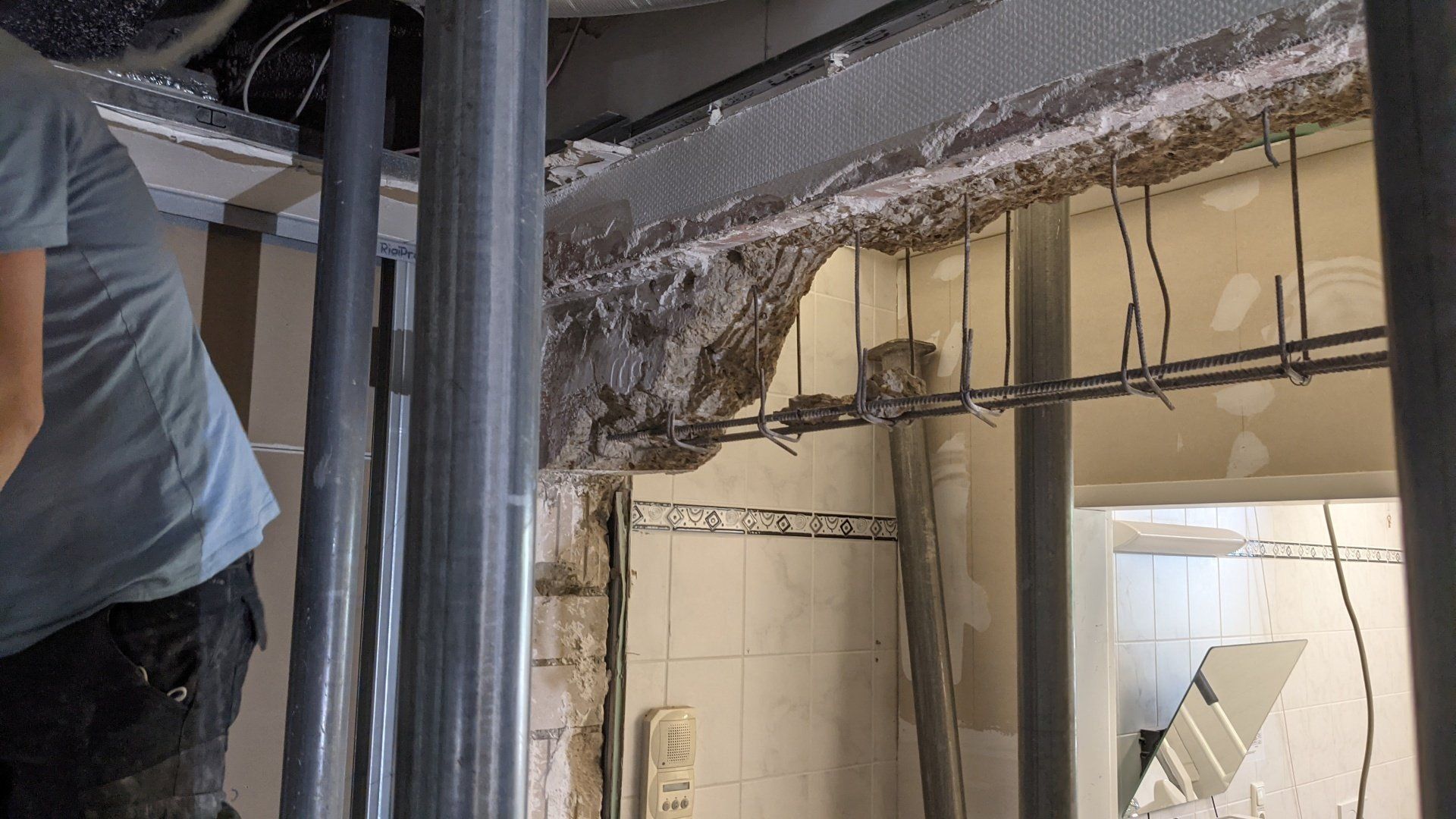 Abriss einer einsturzgefährdeten Decke und deren Erneuerung.