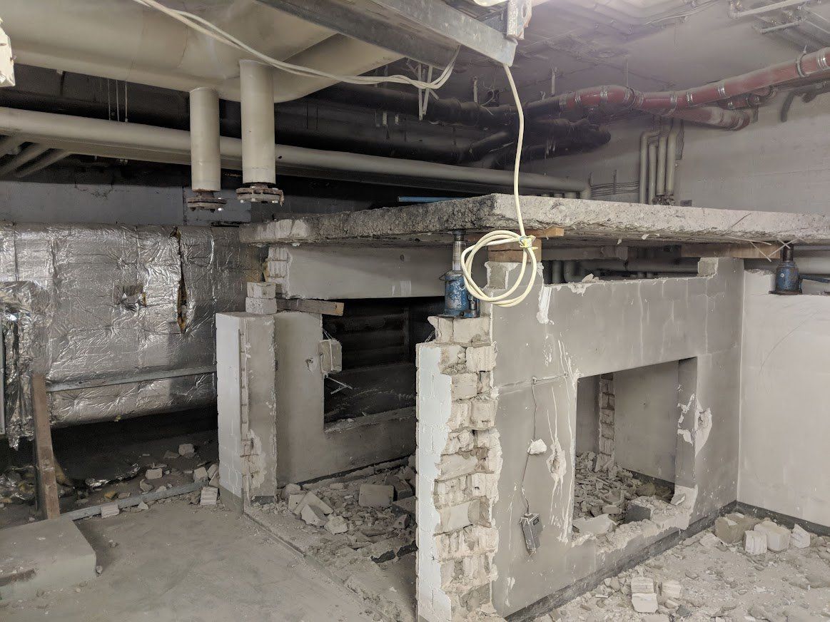 Abstützarbeiten ausgeführt zur Verstärkung einer Decke zwecks Einbau eines neuen Ct Gerätes.