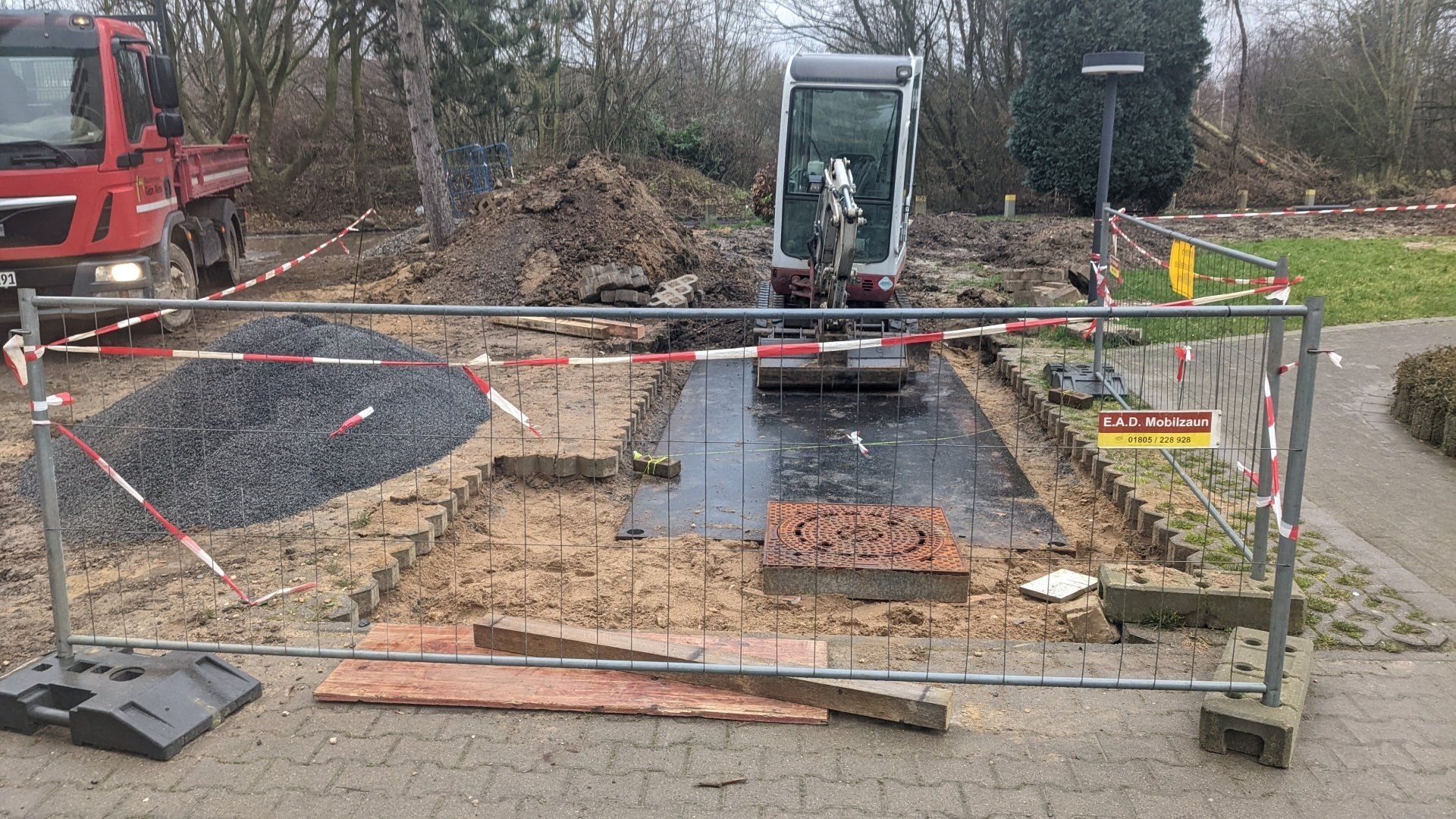 Erdarbeiten und Fundamente erstellt für eine Holländische Fahrradstation am Krankenhaus