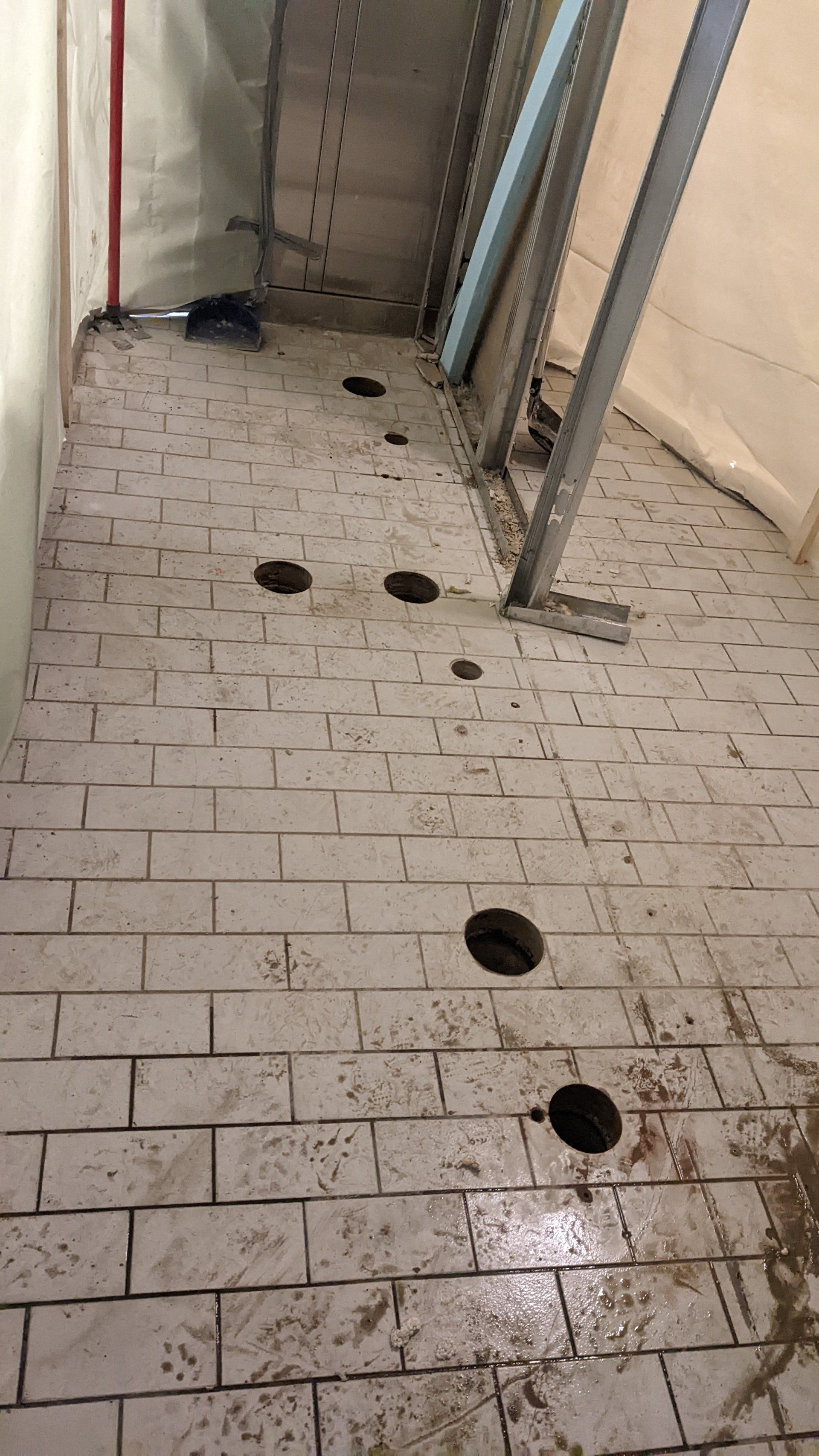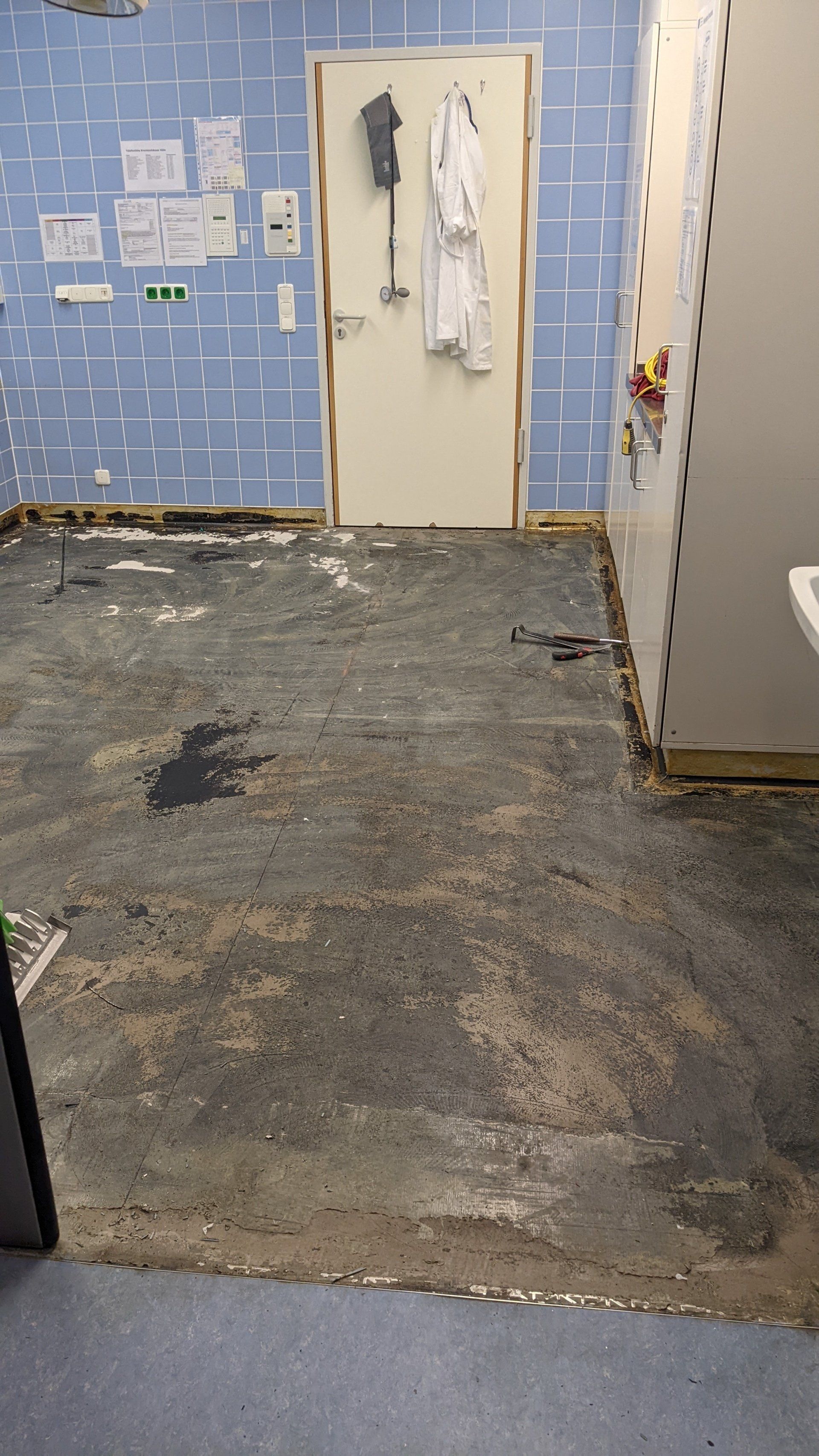 Abbruch einer Betonfertigteilkabine im 4 Og eines Krankenhauses. Dies war ein Bad.