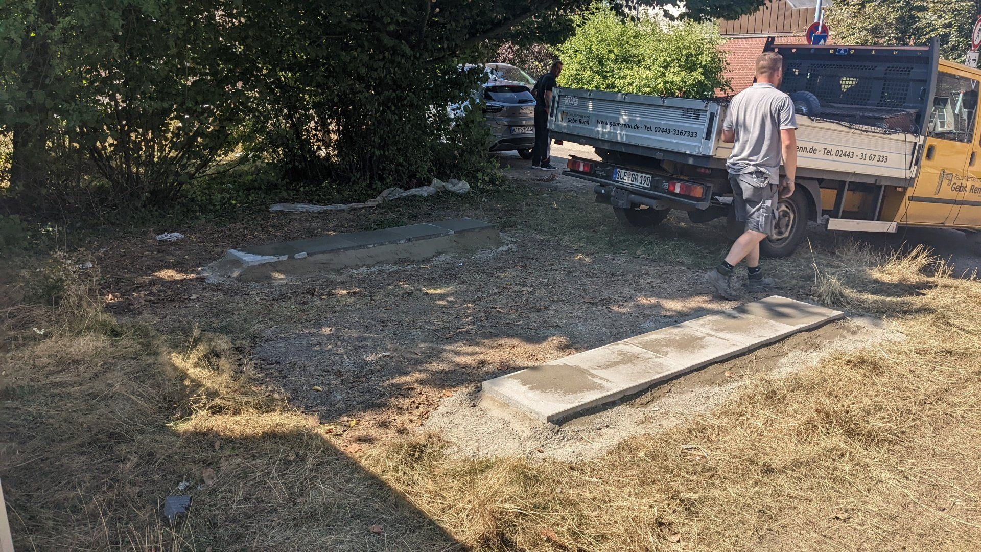 Fundamente für Sonnenschirme und Sitzflächen pflastern