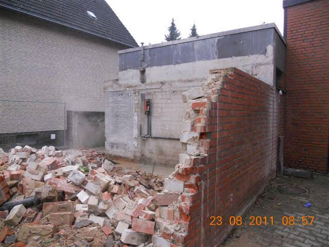 Abriss einer alten Garage an einem Krankenhaus zur Errichtung einer neuen Rettungswache.