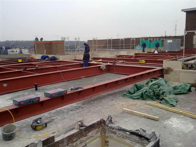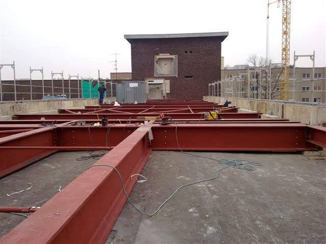 Stahlunterkonstruktion für die Aufstockung eines Krankenhauses hergestellt